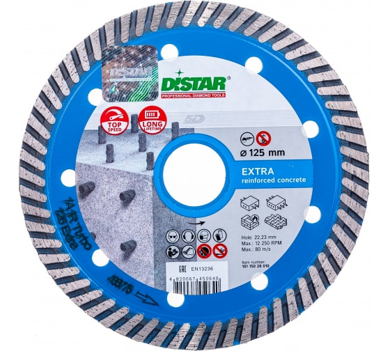 Диск алмазный сплошной DiStar турбо Extra (армированный бетон) 125мм/22,2 для УШМ (10115028010)