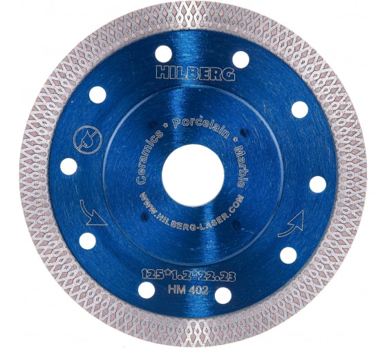 Х-образная режущая кромка позволяет резать без применения воды. Фланец на корпусе диска, для дополнительной жесткости корпуса, и ультратонкая режущая кромка обеспечивают чистый рез без сколов. Высота алмазного слоя - 10 мм.